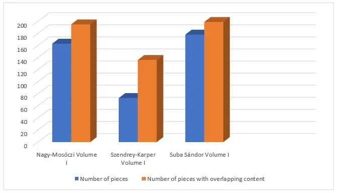 Szendrey-Karper’s collection has the most overlaps in content. Its almost every item has a secondary, or even tertiary, characteristic. Generally, the more pieces are contained in a volume, the less is the need to compress multiple tasks into one exercise or piece. It is worth considering which option is more fruitful. Presumably, the series with little overlap in content consist of better defined tasks and enable a slower but more thorough progress.