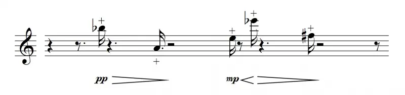 If we wish to achieve a slight difference compared to a specific pitch, which is smaller than a semitone, namely a quarter tone or micro-tone, usually we must employ alternative fingerings. This could happen through muted fingerings (additional closing, that is, closing the row)[4], utilising the small apertures on the key, and overblowing notes, whereby we open aperture(s) next to the adequate joint to produce harmonics.