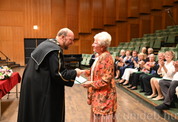 Jubileumi diplomaosztó ünnepségen arany-, gyémánt- és vasoklevéllel köszöntötte egykori növendékeit a Debreceni Egyetem Zeneművészeti Kara a Liszt teremben. Az eseményen a DE ZK huszonkét végzettje vette át jubileumi diplomáját.
