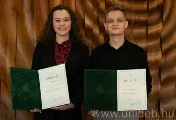 A Debreceni Egyetem Zeneművészeti Kar két tehetséges hallgatója nyerte el idén kimagasló tanulmányi és művészeti tevékenységéért a Nemzeti Felsőoktatási Ösztöndíjat. A fiatal zeneművészek Lakatos Péter dékántól vehették át elismerő okleveleiket.